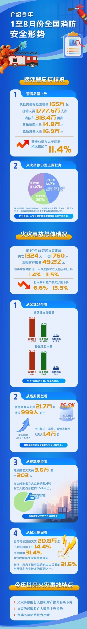 國家消防救援局于9月25日(星期三)上午10時舉行例行新聞發布會,介紹今年1至8月份全國消防安全形勢。