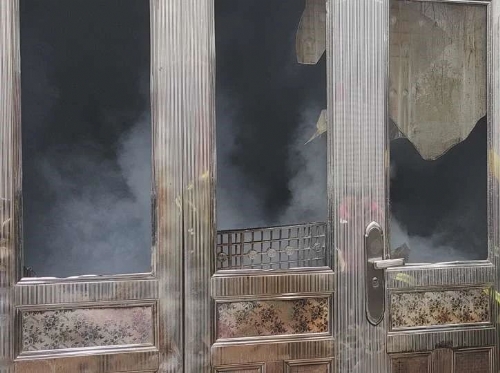 滾滾黑煙不斷從大門冒出